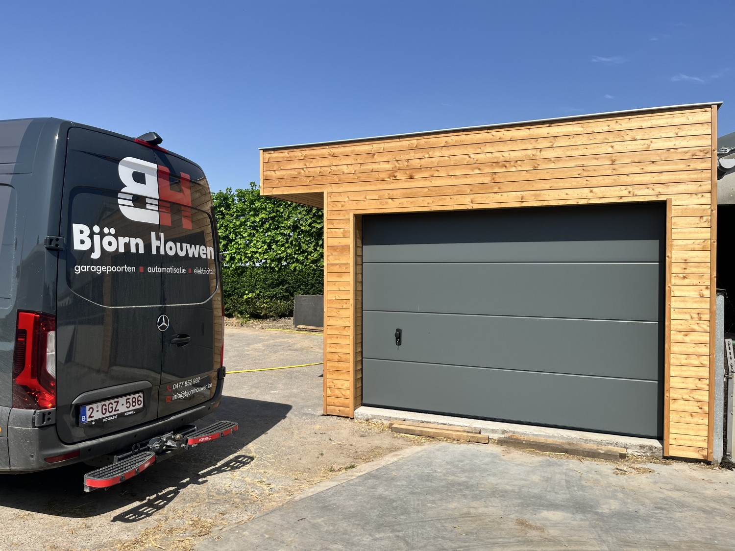 Plaatsen van een garage poort in houten bijgebouw te Vleteren